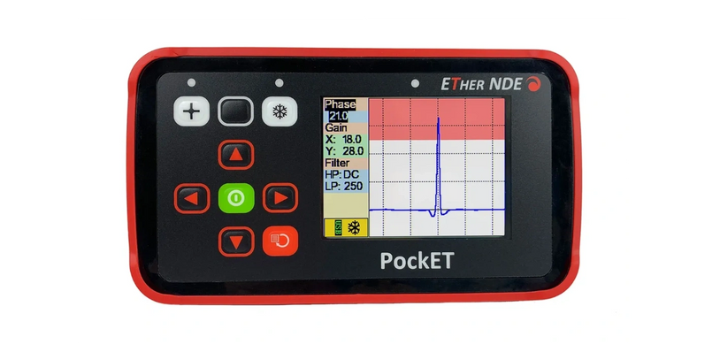 PockET is a compact single-channel, single-frequency eddy current instrument designed to detect both surface and sub-surface defects with exceptional accuracy. Despite its miniature size, it delivers fast scanning speeds, advanced signal processing, and a crystal-clear high-resolution display — making inspections simple, reliable, and repeatable.